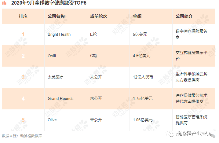本月在全球范围内,数字医疗保险服务商Bright Health宣布完成5亿美元E轮融资,投资方包括Tiger Global Management、T. Rowe Price Associates、Blackstone、NEA、Bessemer Venture Partners和Greenspring Associates。